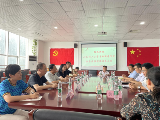 郭万保书记简要介绍了山东理工大学生命科学学院的基本情况和此次考察交流的目的,随行人员重点围绕生物学(学术学位)和生物与医药(专业学位)联合培养研究生的招生、保证研究生培养质量的经验以及党建思政、科学研究、研究机构与实验室建设等情况进行介绍。双方在研究生导师合作方面开展了热烈的探讨,共同表示希望进一步加强交流与合作,促进双方共同发展。