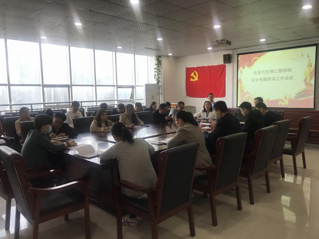 9月29日上午,农业与生物工程学院安全教育与心理健康教育工作专题工作会议在w224会议室组织召开,党委书记周天华、学工办主任黄燕丽、辅导员谭政、许修垒、刘星、郭锐颖及各班班主任参会。