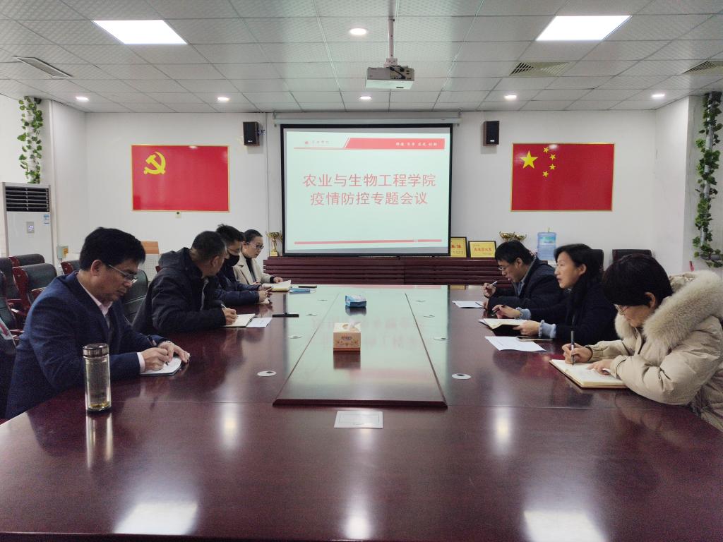 为深入贯彻落实疫情防控工作要求,强化工作措施,筑牢防控屏障,11月29日上午,农业与生物工程学院在综合实验楼W224会议室召开疫情防控专题会议。党委书记刘燕、院长李建奇、党委副书记李战国、副院长毕瑞明、副院长张国松、办公室主任田福忠、学工办主任黄燕丽参加了本次会议。