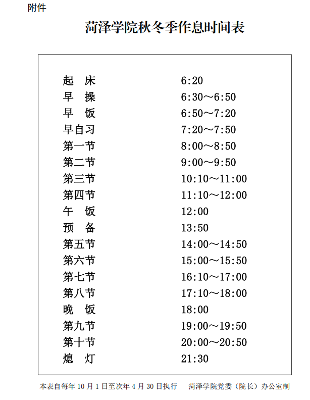 3.自 10 月 1 日起执行秋冬季作息时间。(如图)